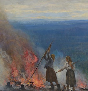 De forma similar a los paisajistas franceses, Järnefelt realizó la obra en el lugar de la acción y cuando comenzó a trabajar en ella, Finlandia había sufrido una gran hambruna entre 1892 y 1893. En Laponia seguía realizándose una técnica de cultivo conocida desde antiguo en el Norte de Europa, consistente en el talado de los árboles de un terreno, quemándose dicha zona el mismo año o a lo sumo, en los siguientes. La consecuencia era que la superficie quemada era aprovechada para el cultivo de diversas cosechas anuales, ya que las cenizas y la flora ayudan a la fertilización de la tierra.
