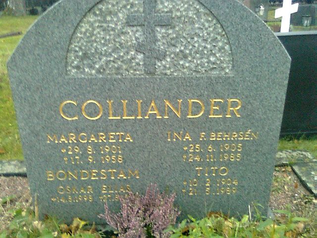 Unos meses antes del nacimiento de su hija Katariina, la familia se mudó a Helsinki, pero decidió regresar a Kuokkala a fines del verano. Ina Colliander fue durante este tiempo junto a la pintora Ellen Thesleff (1869-1954), la única artista gráfica femenina en el área metropolitana de Helsinki a principios de la década de 1930. Durante la Segunda Guerra Mundial, la vida familiar sufrió una ruptura, ya que Ina y sus hijas huyeron de la guerra refugiándose en Suecia, mientras Tito permanecía en Finlandia.