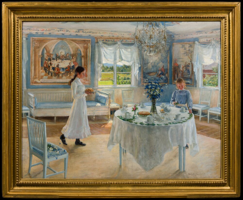 La obra con la que se abre esta semana es un óleo titulado “Un día de celebración” (Namnsdag), realizado en 1902 por Fanny Brate (1861, Estocolmo – 1940, Estocolmo), el cuál tiene unas dimensiones de 88 x 110 cm y se encuentra en el Museo Nacional de Estocolmo (Stockholm Nationalmuseum).