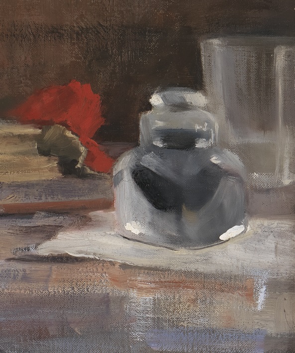 Éste es el que a través de su trayectoria se encarga de realzar los objetos sobre la mesa, desde el tintero opaco al vaso de vidrio, pero especialmente la taza de cerámica con tonos azules en la que se encuentra la rama, interpretada cómo la superación de la enfermedad y la vuelta a la vida.