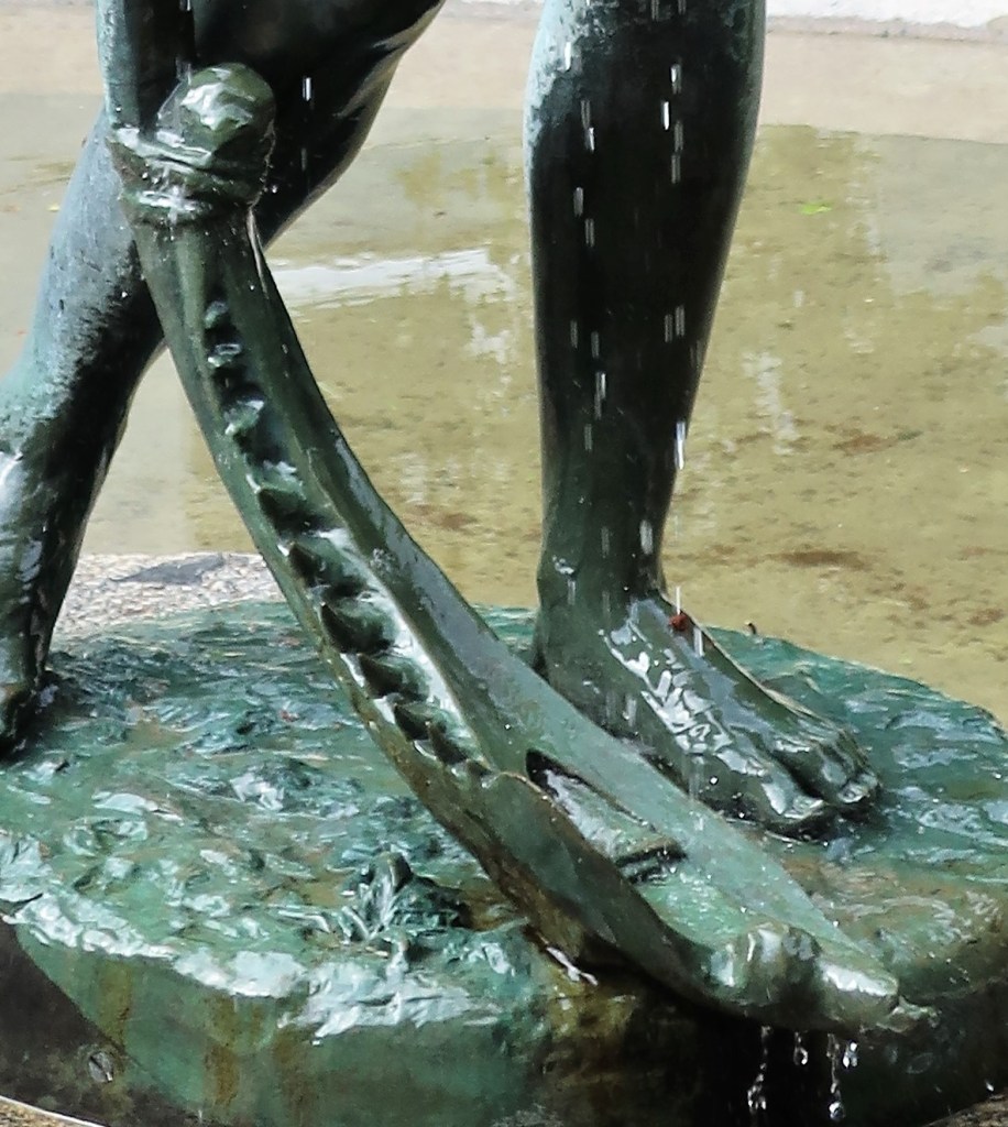 La figura está esculpida en una pose muy clásica con la pierna derecha hacia atrás, pensada para sostener el peso de la misma y con un contrapposto elevando la cadera izquierda. Cerca de sus pies se encuentra un gran lucio, cuya cola está atada a una rama de madera curvada de la que surgen las cuerdas, creadas a través de chorros de agua, hasta la cabeza de la figura femenina.