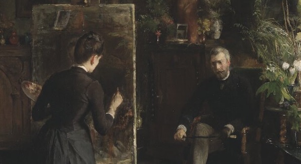 La obra de esta semana se titula “La artista danesa Bertha Wegmann pintando un retrato” (“Den danska konstnärinnan Bertha Wegmann målande ett porträtt”), realizado a finales de la década de 1870 por Jeanna Bauck (1840, Estocolmo – 1926, Múnich). Con unas medidas de 100 x 110 cms, se encuentra en las colecciones del Museo Nacional (Nationalmuseum) de Estocolmo.
