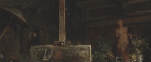 Todo el lugar muestra la importancia de los numerosos encargos que ambas recibieron, encontrando una rica alfombra a los pies de la estancia y muebles de madera adornados con una gran labor de artesanía. Sobre éstos últimos se encuentran recipientes de vidrio, botellas y una sombrilla de tipo oriental. La importancia del arte en la vida de éstas mujeres se refleja no sólo con los útiles de su trabajo como un bote con pinceles o la carpeta con dibujos, sino también en el retrato de mujer realizado por la propia Bertha realizado en 1872 (actualmente en Nationalmuseum) que cuelga de una de las paredes y un vaciado de escayola representando a la estatua clásica conocida como la Venus de Milo.