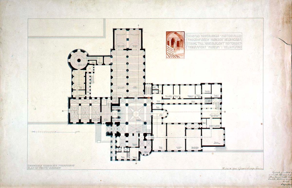 En 1901 el Senado convocaría un concurso de arquitectura para diseñar el nuevo museo, sugiriendo qué el edificio debería poder ampliarse a medida qué las colecciones fueran creciendo. El tribunal de selección estaba presidido por Johannes Reinhold Aspelin (1842-1915), el primer arqueólogo finlandés, y entre sus miembros se encontraban, entre otros, el arquitecto sueco Isak Gustaf Clason (1856-1930) y su homólogo danés Martin Nyrop (1849-1921). El triunfo fue logrado en 1905 por la propuesta presentada por el estudio Gesellius, Lindgren y Saarinen, compuesto por Herman Gesellius (1874-1916), Armas Lindgren (1874-1929) y Eliel Saarinen (1873-1950), qué habían diseñado el pabellón de Finlandia en la Exposición Universal de París a principios de siglo.