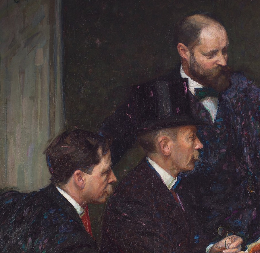 Basándose en la influencia de los retratos de grupo del maestro holandés ejecutaría la obra de ésta entrada a principios del nuevo siglo. En el interior de una estancia y organizada en torno a una mesa con el emblema de la institución se reúne la junta directiva de la misma. Desde la izquierda se encuentran retratados el escultor Christian Eriksson (1858-1935), con sombrero de copa Eugène Jansson (1862-1915), que sostiene en sus manos el catálogo de los artistas que deseaban presentar obras en la exposición de la asociación ese año y de pie, apoyado en el respaldo de una de las sillas Robert Thegerström (1857-1919).