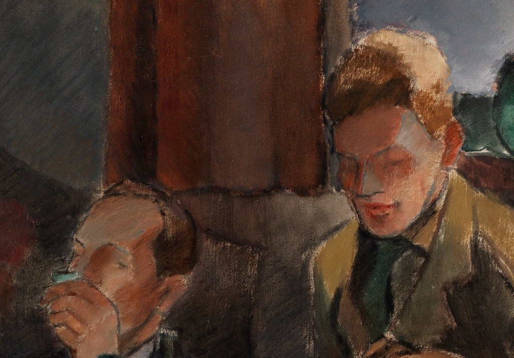 En París compartiría estudio con el escultor Viktor Jansson (1886-1958) y expondría sus creaciones con su nuevo estilo en su país natal en 1912, aunque pronto en sus obras comenzaría a emplear tonos más grisáceos y transparentes. Su arte fue bien acogido desde el principio en oposición a las creaciones de Tyko Sallinen (1879-1955), con el que a partir de 1917 conformaría el llamado Grupo de Noviembre (Marraskuun ryhmä). A ellos pronto se les unirían otros artistas como Wäinö Aaltonen (1894-1966), Hannes Autere (1888-1967), Juho Rissanen (1873-1950) o Marcus Collin (1882-1966). Es por esas fechas cuando Alvar Cawén realizaría la obra de esta entrada mostrando a algunos componentes de la asociación.