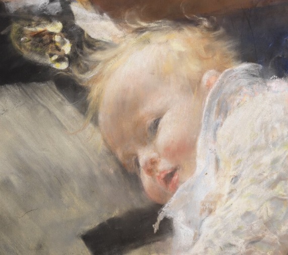 La obra de esta semana es un pequeño pastel con tema íntimo titulado “Un idilio en el estudio. La esposa del artista y su hija Suzanne” (“Ateljé-idyll. Konstnärens hustru med dottern Suzanne”) realizado en 1885 por el pintor sueco Carl Larsson (1853, Estocolmo – 1919, Falun). Con unas medidas de 66 x 50 cm forma parte de las colecciones del Museo Nacional (Nationalmuseum) de Estocolmo.