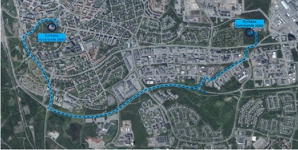Debido al peso, éstos circulaban lentamente a razón de 500 metros por hora hasta su lugar actual, siendo rotada a su llegada 180º, orientando el altar hacia el oeste para abrir de forma simbólica la iglesia a la ciudad de Kiruna y a sus residentes.